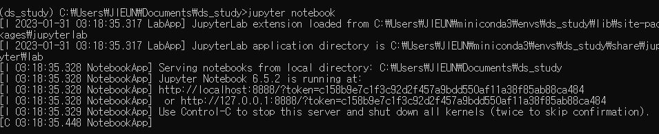 2. 콘다에서 전에 만들어 둔 ds_study 커널을 실행해준다.