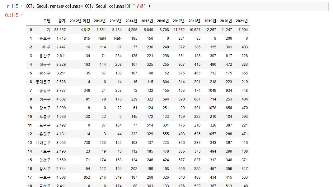 CCTV_Seoul.rename(columns={CCTV_Seoul.columns[0]:"구별"}, inplace=True)