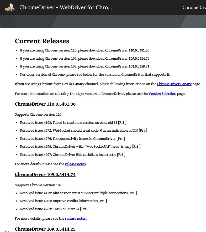 3. 구글에서 chromedriver를 검색해서 Downloads 페이지에 접속한다.