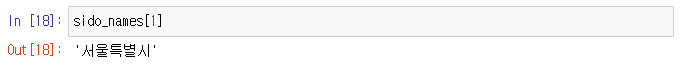 5. sido_list_raw 변수에 리스트 결과값을 저장한 sido_names