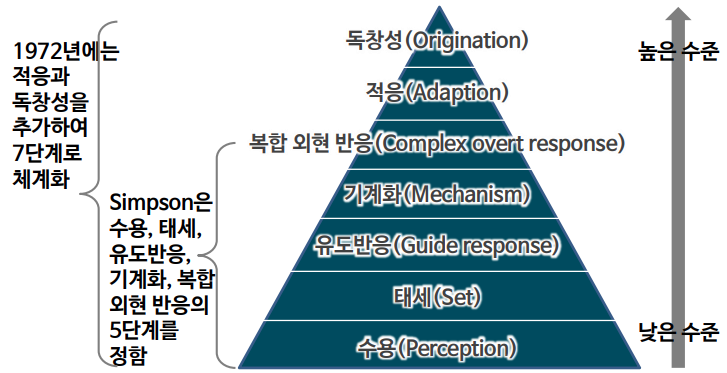 - 심동적 영역(Psychomotor domain)의 교육 목표