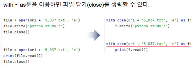 with ~ as문을 이용하면 파일 닫기(close)를 생략할 수 있다