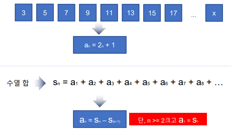 # 등차 수열(합) 공식: sn = n(a1 + an) / 2