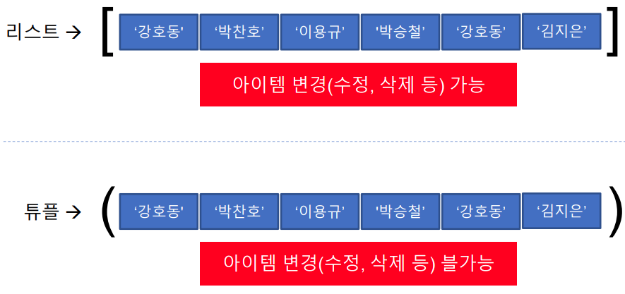 리스트(List)와 비슷하지만 아이템 변경이 불가하다.