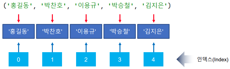 튜플도 리스트와 마찬가지로 아이템에 자동으로 부여되는 번호표가 있다.