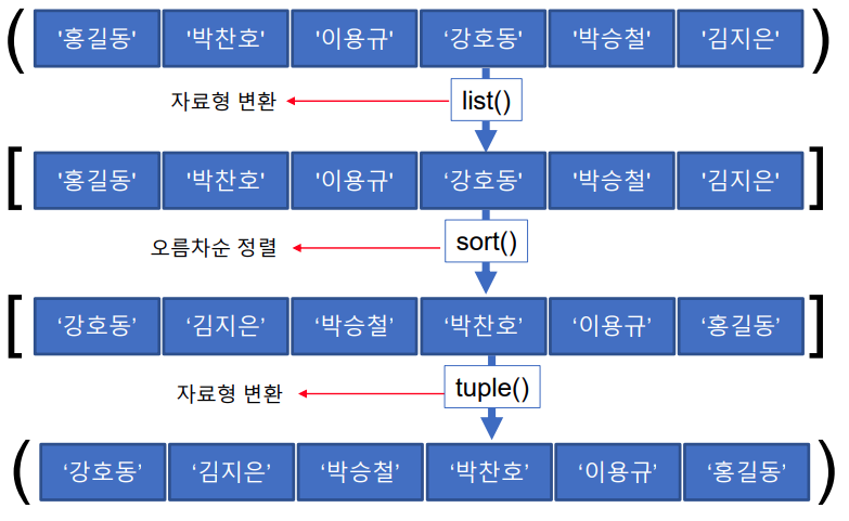 튜플은 수정이 불가하기 때문에 리스트로 변환 후 정렬하자.