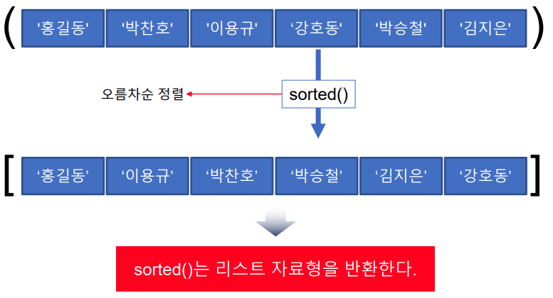 sorted() 함수를 이용하면 튜플도 정렬할 수 있다