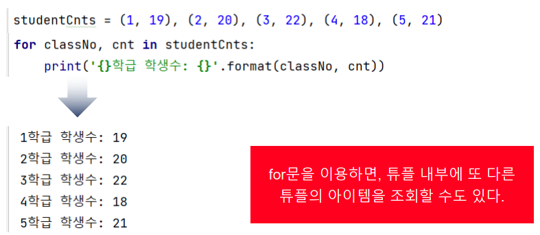 튜플 for문을 이용한 조회