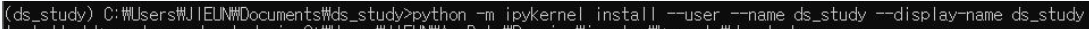 → 커널을 생성하는 명령어, 가상환경은 연결해야 될 가상환경명칭과 커널명은 주피터에서 보여질 명칭이라고 생각하면 된다.