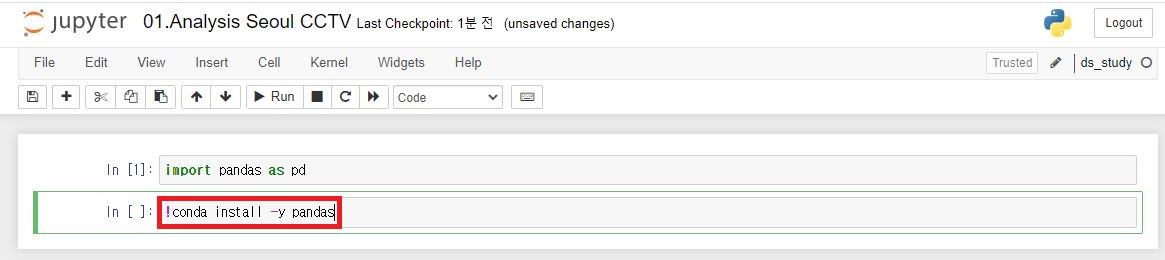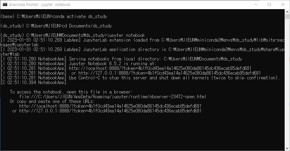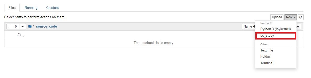 2. 콘다에서 전에 만들어 둔 ds_study 커널을 실행해준다.