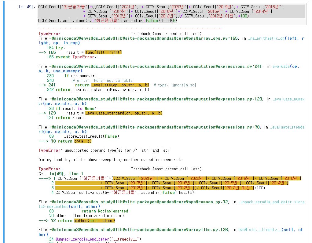51. 최근증가율을 구하려는데 Type 오류가 뜬다. 해결해보자.