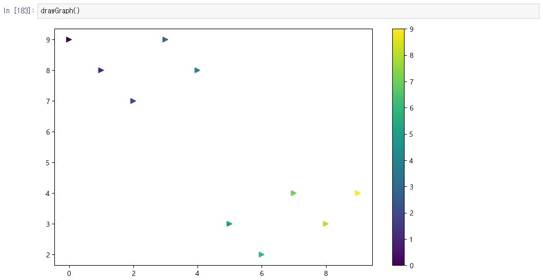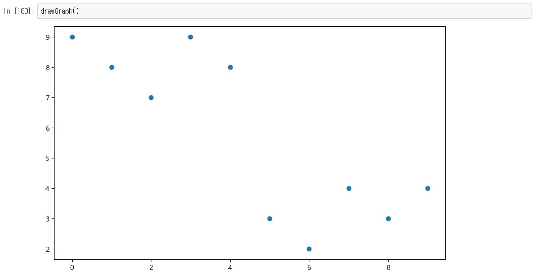 10. scatter는 점을 뿌리듯이 그리는 그림이다.