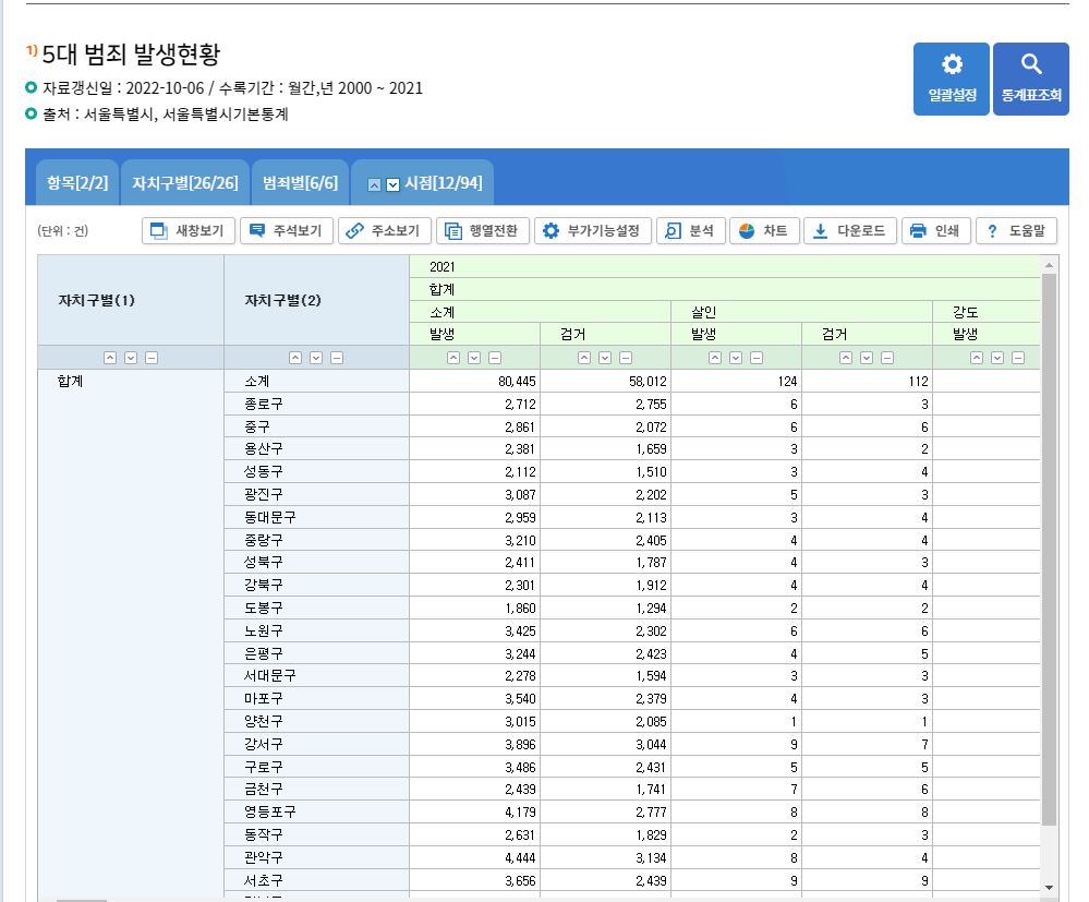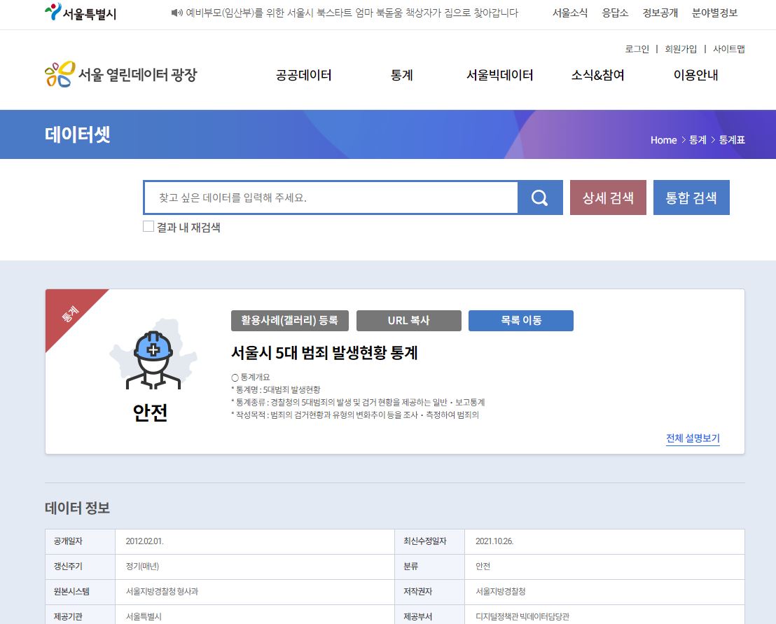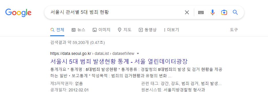 1. 구글에서 "서울시 관서별 5대 범죄 현황" 을 검색한다.