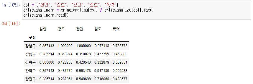 crime_anal_norm = crime_anal_gu[col] / crime_anal_gu[col].max()