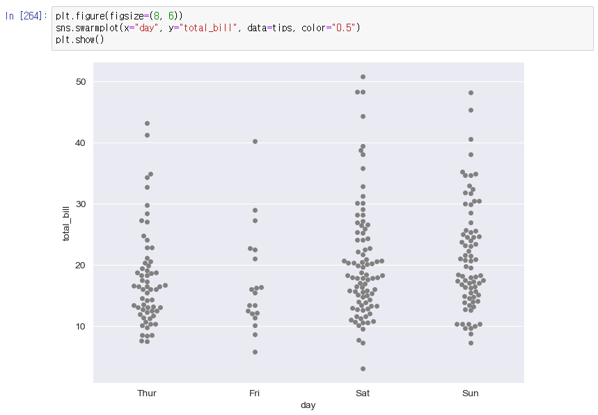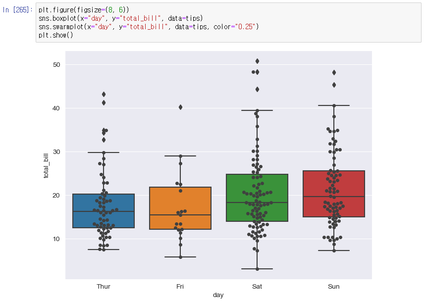 - boxplot을 swarmplot의 콜라보