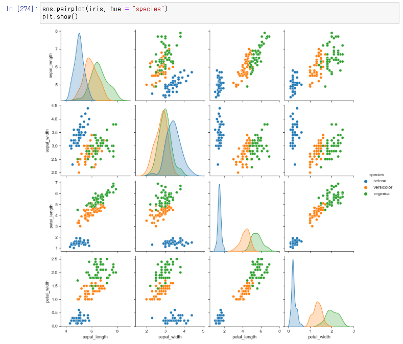 pairplot에서도 hue 옵션을 사용해보자