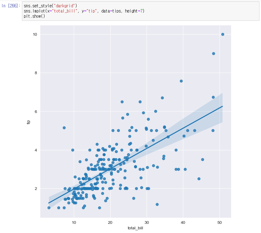 - total bill과 tip 사이의 관계 파악
