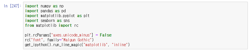 - seaborn은 import하는 것만으로도 효과를 준다.