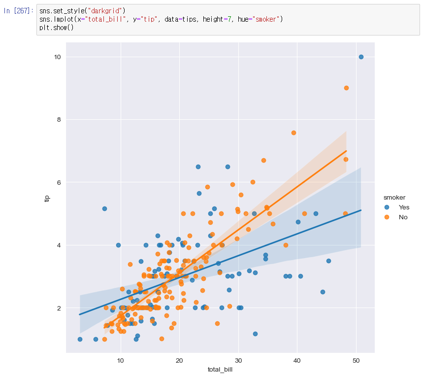 - implot에서 hue옵션을 사용해보자