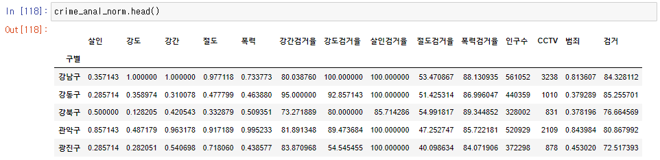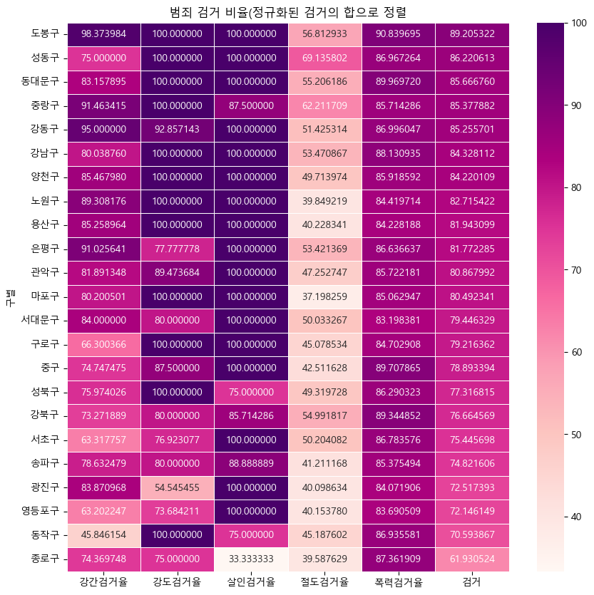 crime_anal_norm_sort = crime_anal_norm.sort_values(by="검거", ascending=False)