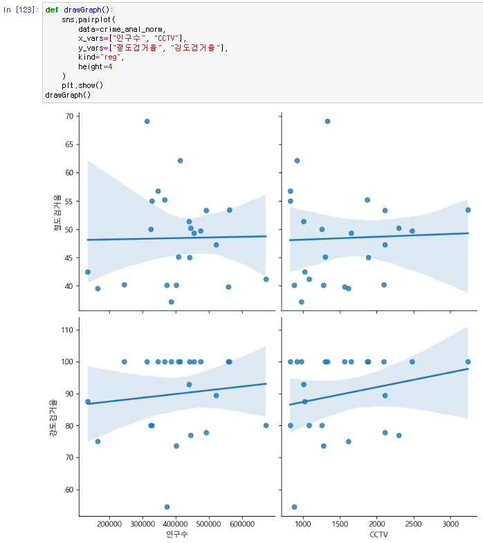 5. 인구수, CCTV와 살인/ 폭력검거율의 관계를 보자