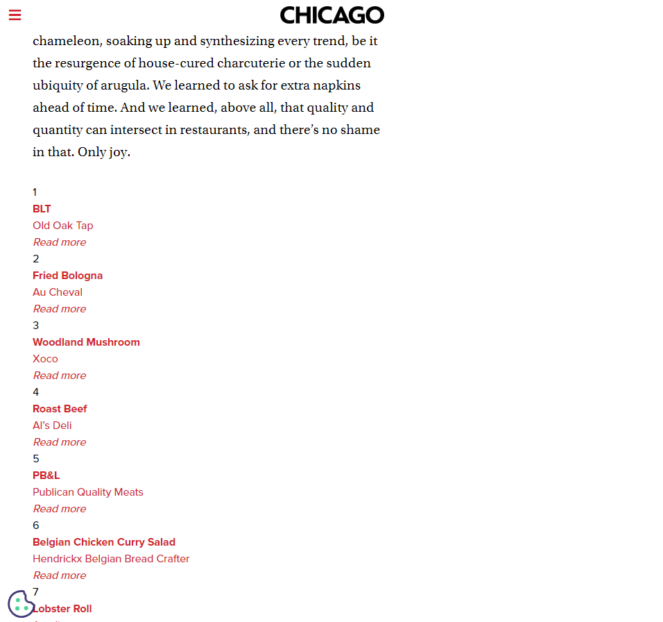 1. 이번에 분석할 페이지는 시카고 샌드위치 맛집 소개 페이지이다.