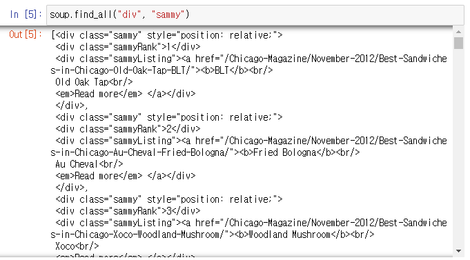 soup.find_all("div", "sammy")