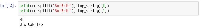13. 가게 이름과 메뉴는 re 모듈의 split으로 쉽게 구분할 수 있다.