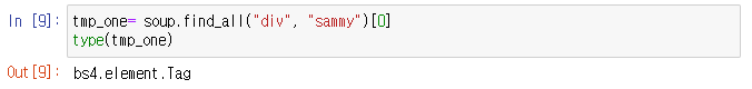 9. type을 확인해보니 bs4.element.Tag이다 find 명령을 사용할 수 있다.