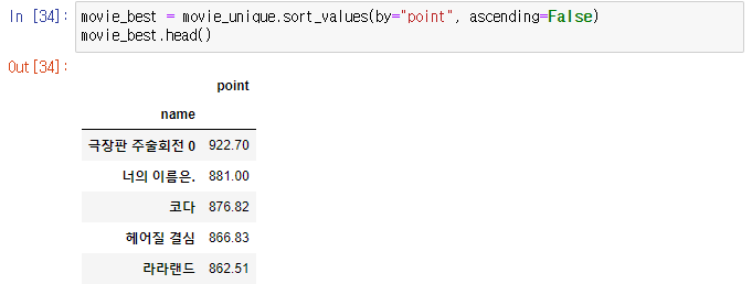 movie_best = movie_unique.sort_values(by="point", ascending=False)