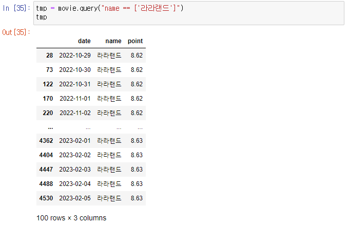 tmp = movie.query("name == ['라라랜드']")