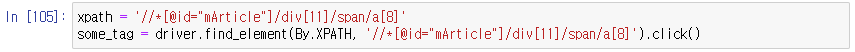some_tag = driver.find_element(By.XPATH, '//*[@id="mArticle"]/div[11]/span/a[8]').click()