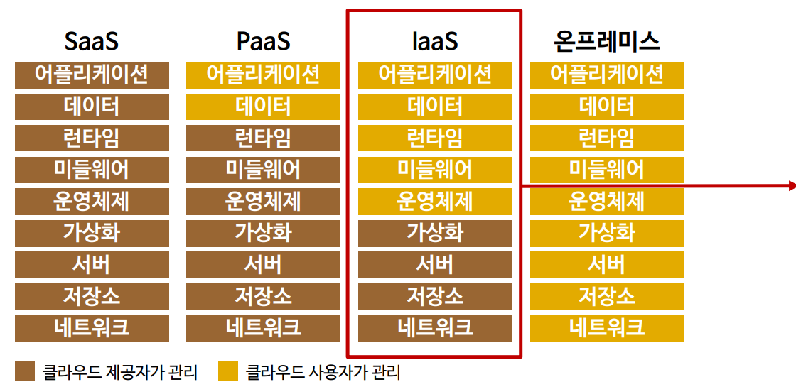 - 물리적 서버(CPU, Memory 등), 네트워크, 스토리지 등을 가상화하여 다수의 고객을 대상으로 유연하게 제공하는 인프라 서비스