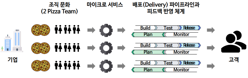 제품에 대한 시장 피드백에 신속히 대응할 수 있는 작은 조직, 하나의 책임, 독립적 배포에 의해 빠르게 혁신하고 개선