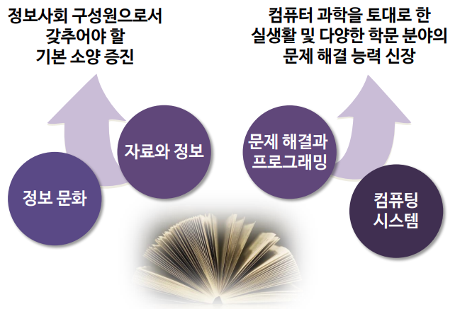 정보는 정보 과학 기술의 기본 개념과 원리를 이해하고, 실생활의 다양한 문제를 계산적 사고(computational thinking)로 관찰하고 해결하는 능력과 정보 윤리적 소양을 기르는 데 중점을 둔다.