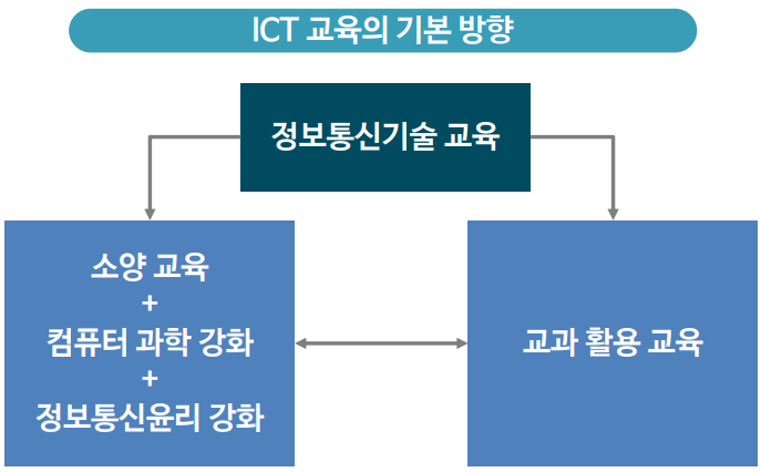 - 정보통신기술 교육의 소양 교육에 컴퓨터 과학 교육과 정보통신윤리 교육 강화