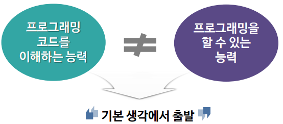 수업 목표를 단순히 프로그래밍 코드를 해석하는 4개 영역에 관한 목표로 한정하지 말고, 프로그램을 생산하는 2개 영역에 관한 목표로 연결되어야 한다고 주장