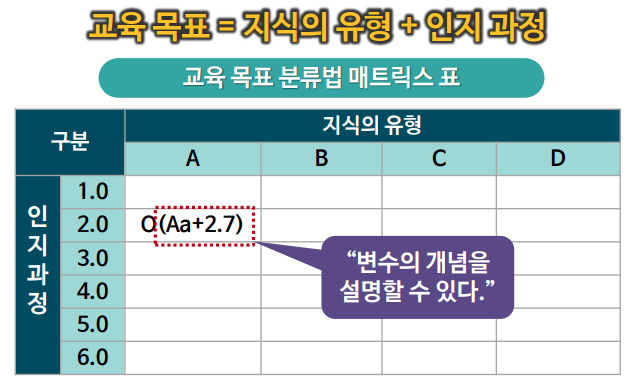 교육 목표 : 교육 활동의 목적을 이루기 위하여 달성해야 할 구체적인 사항