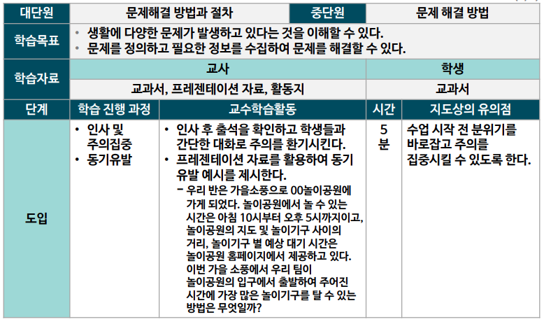 - 다양한 교수 · 학습 방법을 살펴보고, 수업의 목표와 내용에 맞는 방법을 선택할 수 있다.