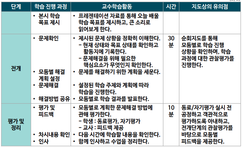 - 교사는 수업 주제 선정 후 한 반을 5~6명으로 구성된 소집단으로 나누어 홈 팀 구성