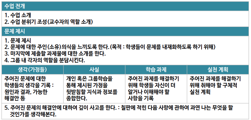 문제중심학습의 단계(Barrows & Myers, 1993)