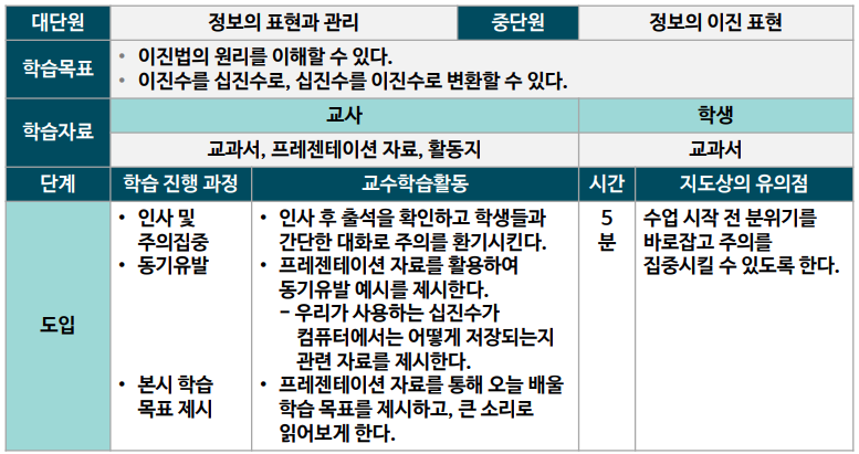 예시) [강의법을 적용한 중학교 정보 교과의 교수학습 과정안]