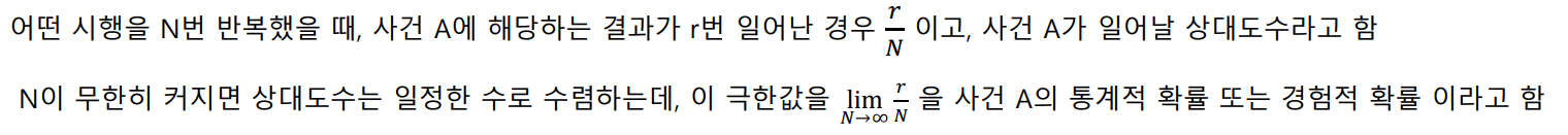 - 표본 공간이란 어떤 실험에서 나올 수 있는 모든 가능한 결과들의 집합