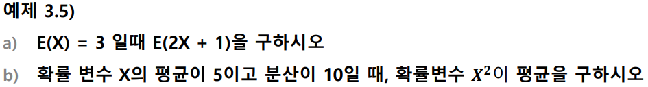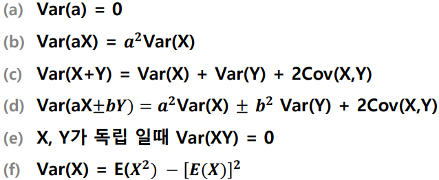 a, b가 상수이고, X, Y를 임의의 확률 변수라고 할 때 다음이 성립한다.