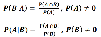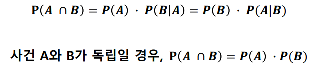 - 어떤 사건 A가 발생한 상황에서(주어졌을 때) 또 하나의 사건 B가 발생할 확률임