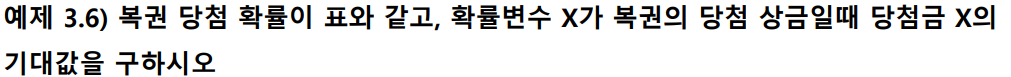 * 확률 변수의 특정값: x, y등 소문자로 표현