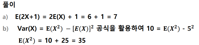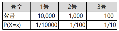 - 일반적으로 확률 변수는 대문자로 표현하며, 확률변수의 특정값을 소문자로 표현함