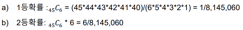 예제 3.3) 로또 1등의 확률과 2등의 확률을 구하시오