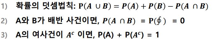 | 합사건(union) 사건 A 또는 사건B가 일어날 확률 A ∪ B |