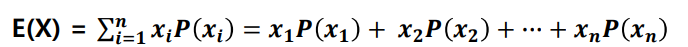 확률 변수의 평균 : 기대값 이라고 표현하기도 하며, 수식은 아래와 같음
